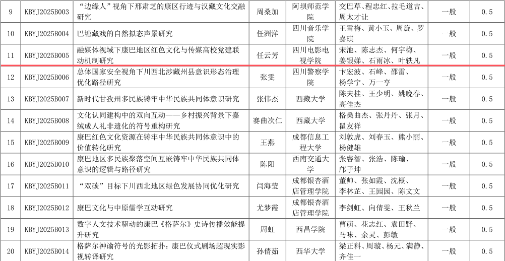 近日,从四川省社会科学重点研究基地康巴文化研究中心获悉,我校任云芳副教授主持申报的《融媒体视域下康巴地区红色文化与传媒高校党建联动机制研究》获得立项。请课题组成员按照康巴文化研究中心课题管理办法做好课题后续研究。