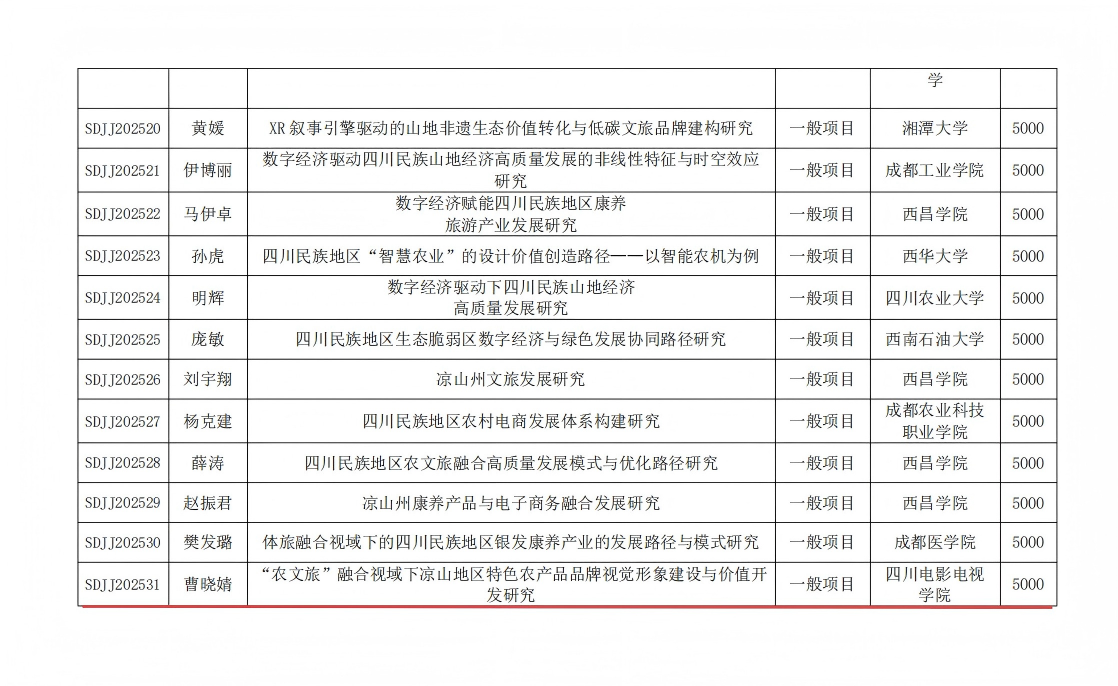 近日,从四川民族山地经济发展研究中心获悉,我校曹晓婧老师主持申报的《“农文旅”融合视域下凉山地区特色农产品品牌视觉形象建设与价值开发研究》获得立项,请课题组成员按照四川民族山地经济发展研究中心项目管理办法做好课题后续研究。