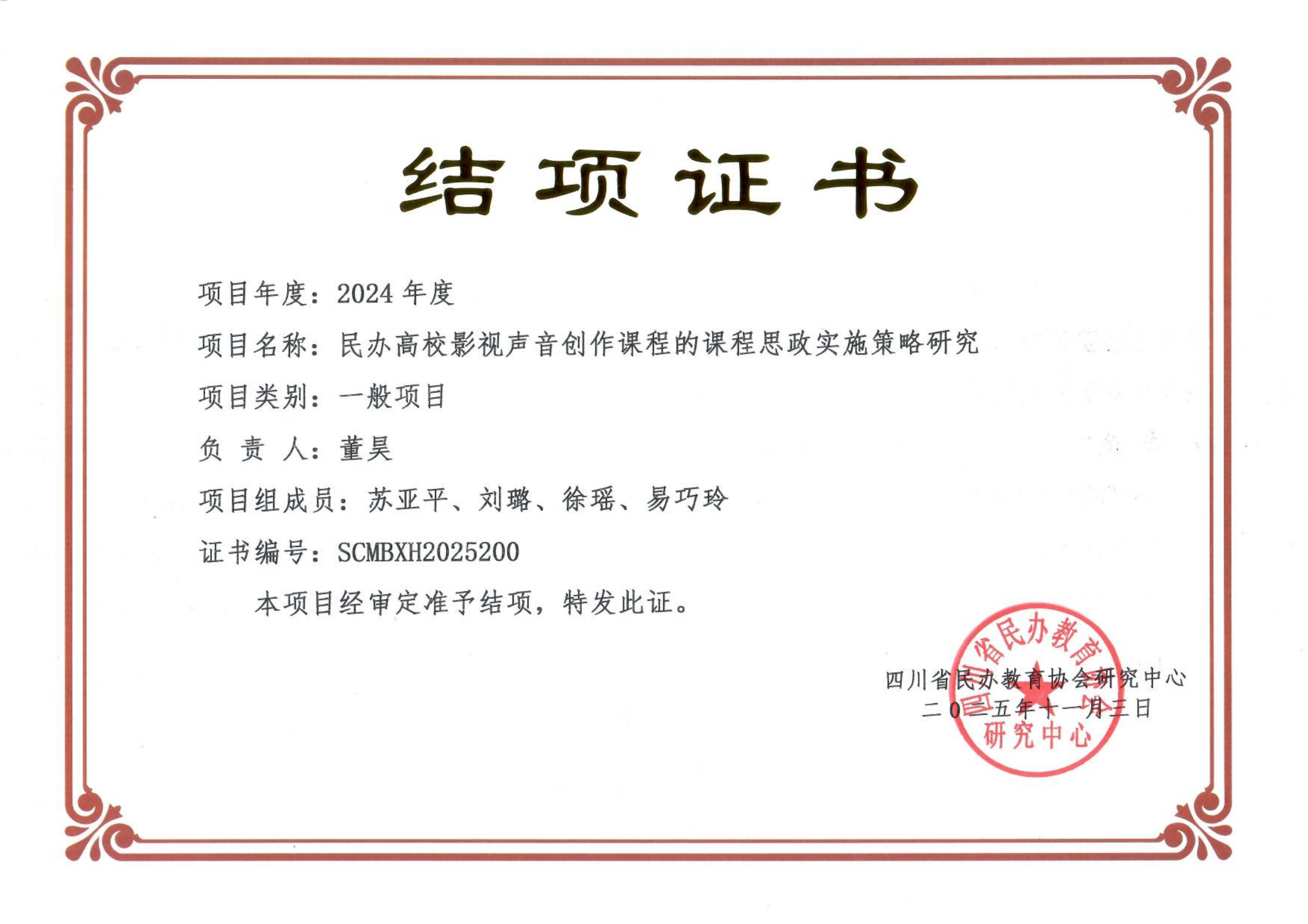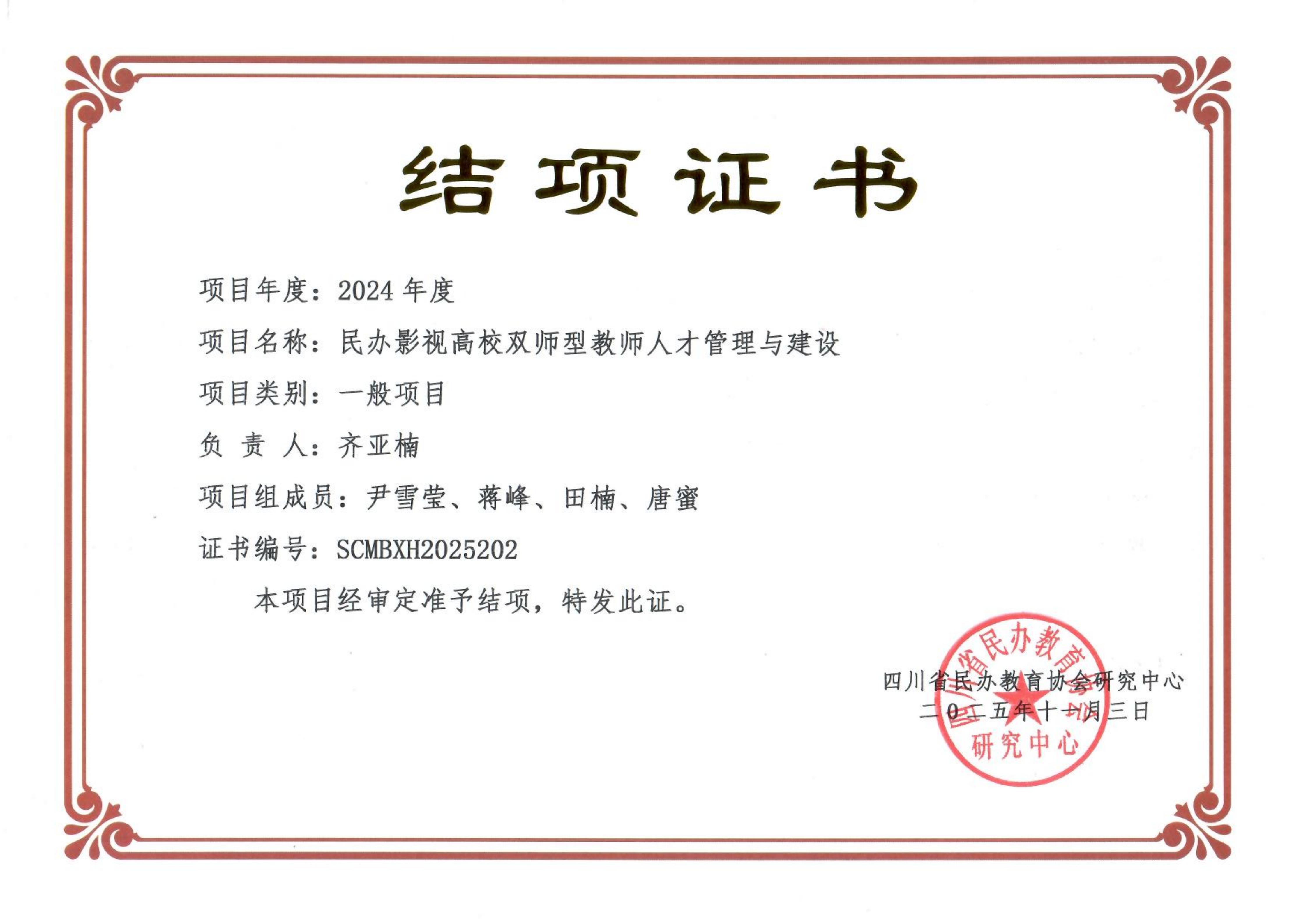 近日,从四川省民办教育协会获悉,我校郭晓露老师主持研究的《民办高校校园文化与巴蜀文化融合研究》;杨月老师主持研究的《民办高校和声课程的教学模式改革及方法》;董昊老师主持研究的《民办高校影视声音创作课程的课程思政实施策略研究》;卢英亮老师主持研究的《雨课堂赋能理实一体化的教学研究——以表演专业为例》;齐亚楠老师主持研究的《民办影视高校双师型教师人才管理与建设》;陈雯雯老师主持研究的《四川民办本科高校党建工作研究——以戏剧影视美术专业课程思政为例》;张媛老师主持研究的《数字媒体艺术教育与新质生产力发展对接机制研究》;何瑛老师主持研究的《基于OBE理念的民办高校中外合作办学的线上线下混合式教学研究——以四川电影电视学院为例》经评审正式结题。