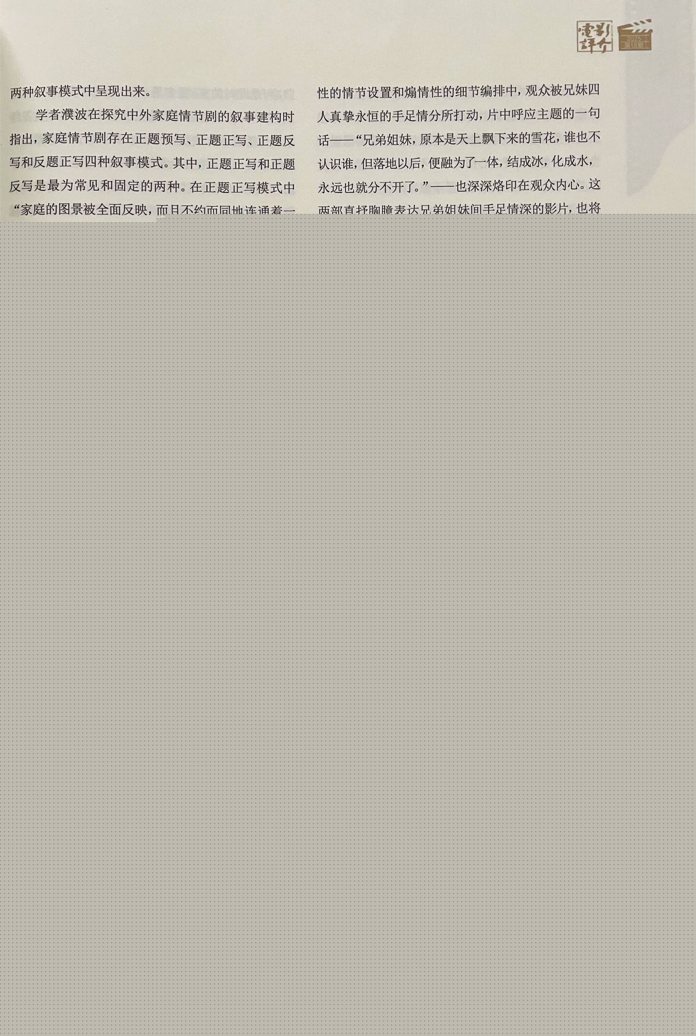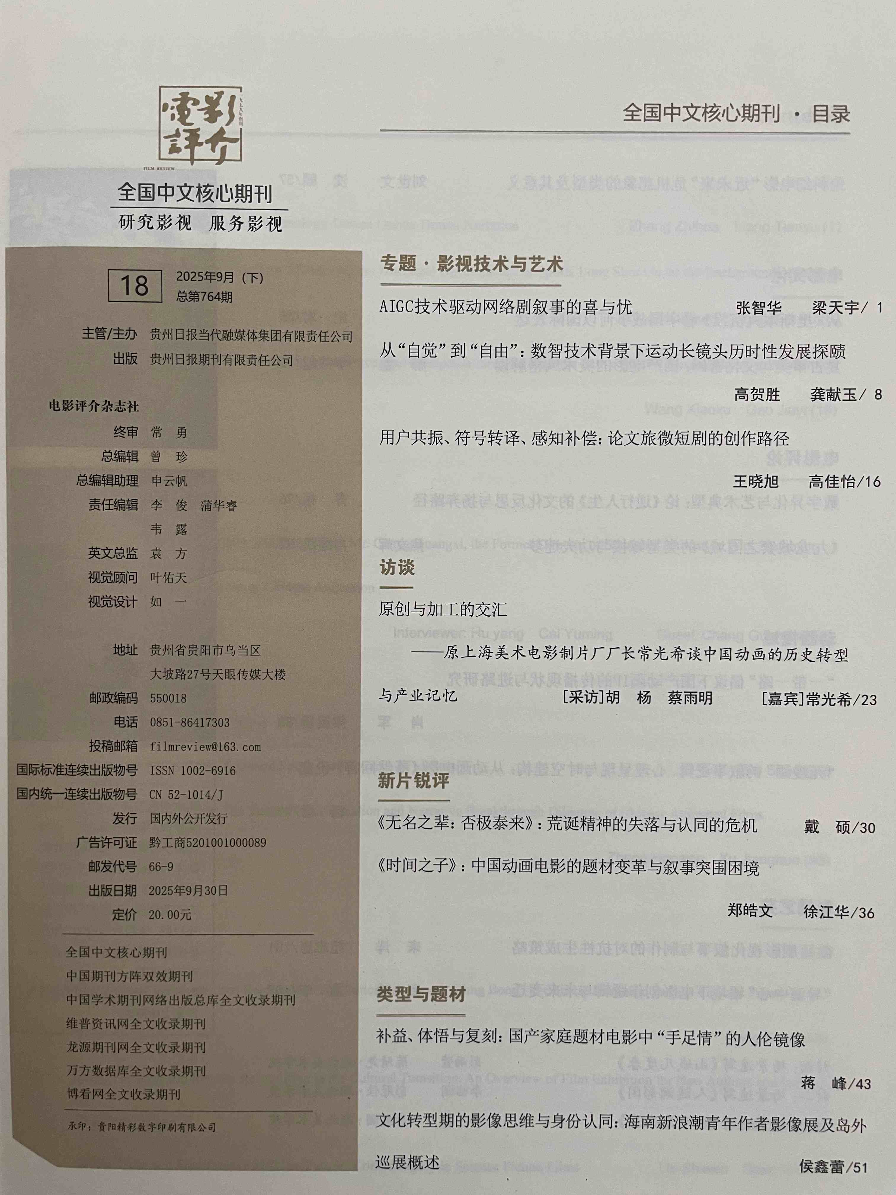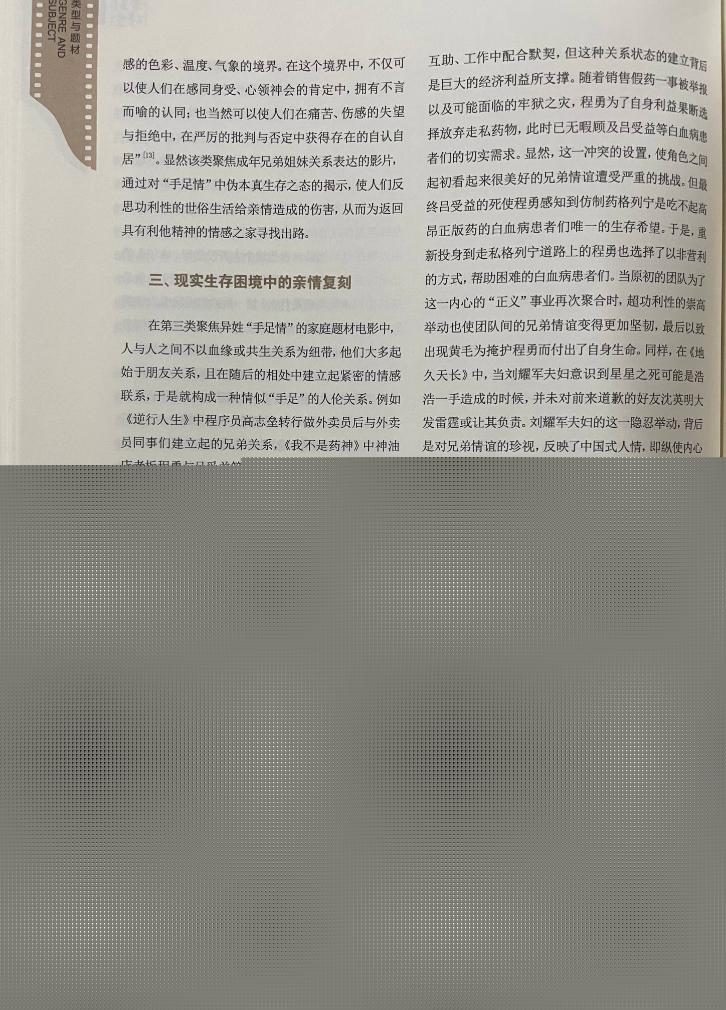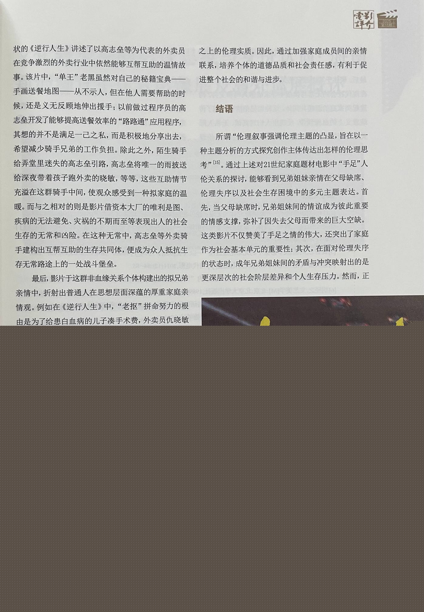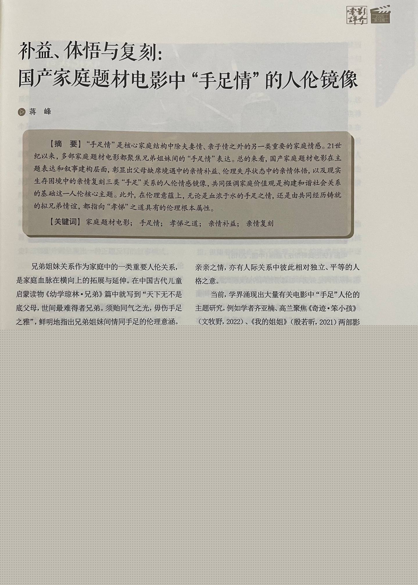 近日,我校视听传媒学院蒋峰老师撰写的论文《补益、体悟与复刻:国产家庭题材电影中“手足情”的人伦镜像》在全国中文核心期刊《电影评介》正式发表。