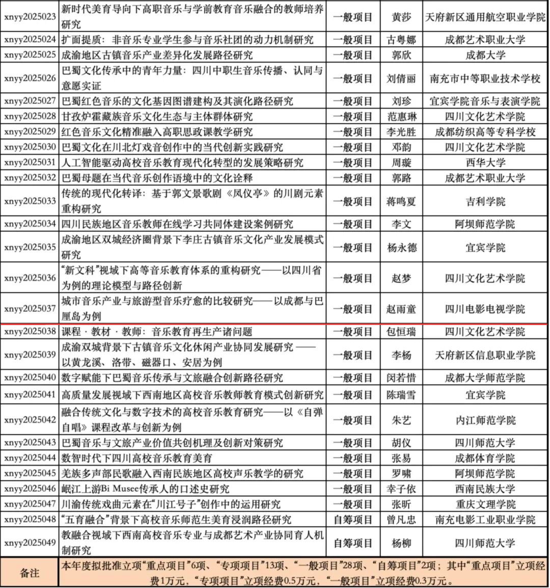 近日,从西南音乐研究中心获悉,我校舞蹈学院赵雨童老师主持申报的《城市音乐产业与旅游型音乐疗愈的比较研究——以成都与巴厘岛为例》获得立项,请课题组成员按照西南音乐研究中心课题管理办法做好课题后续研究。