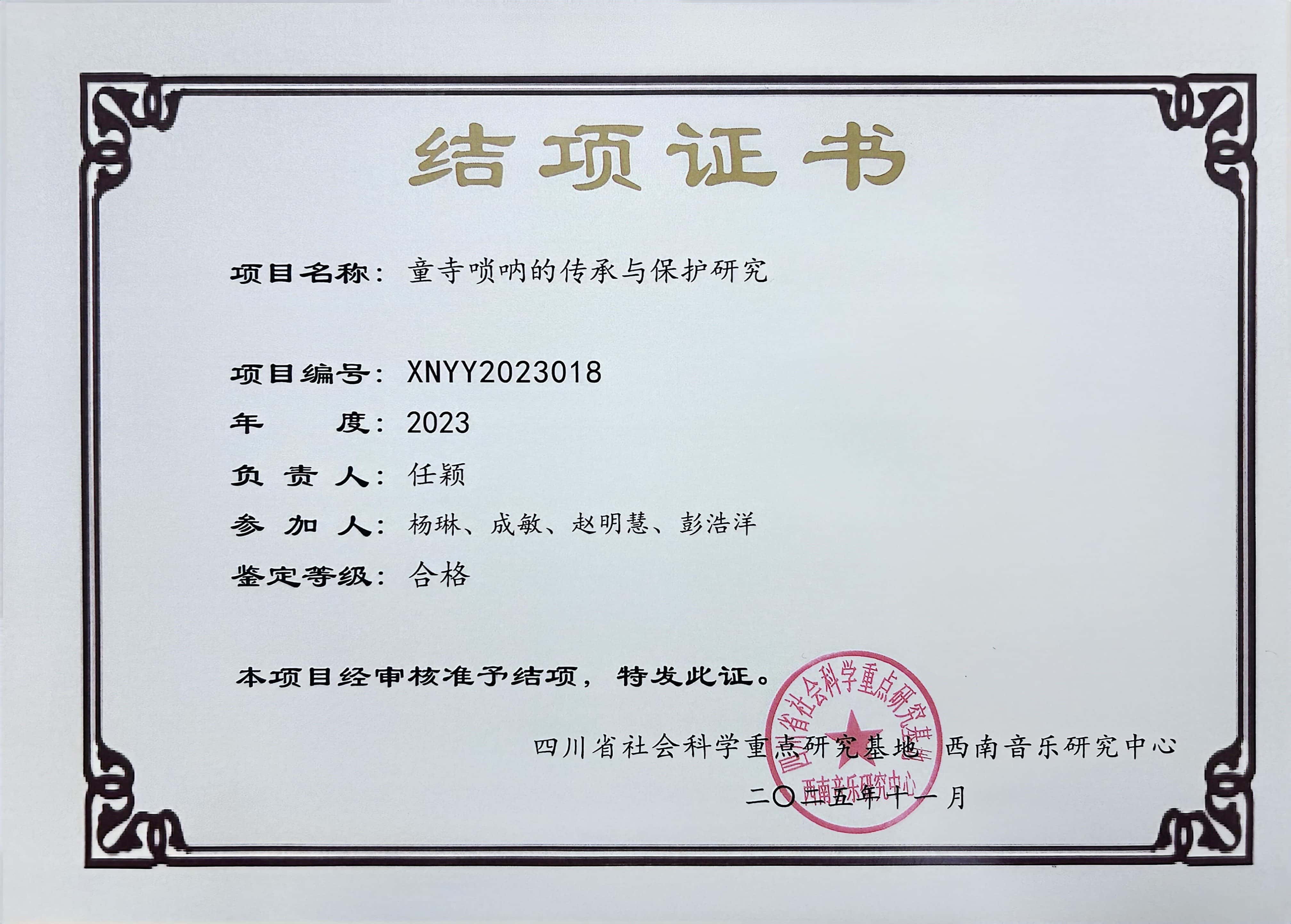 近日,从西南音乐研究中心获悉,我校舞蹈学院任颖老师主持研究的《童寺唢呐的传承与保护研究》(项目编号:XNYY2023018),经评审正式结题。
