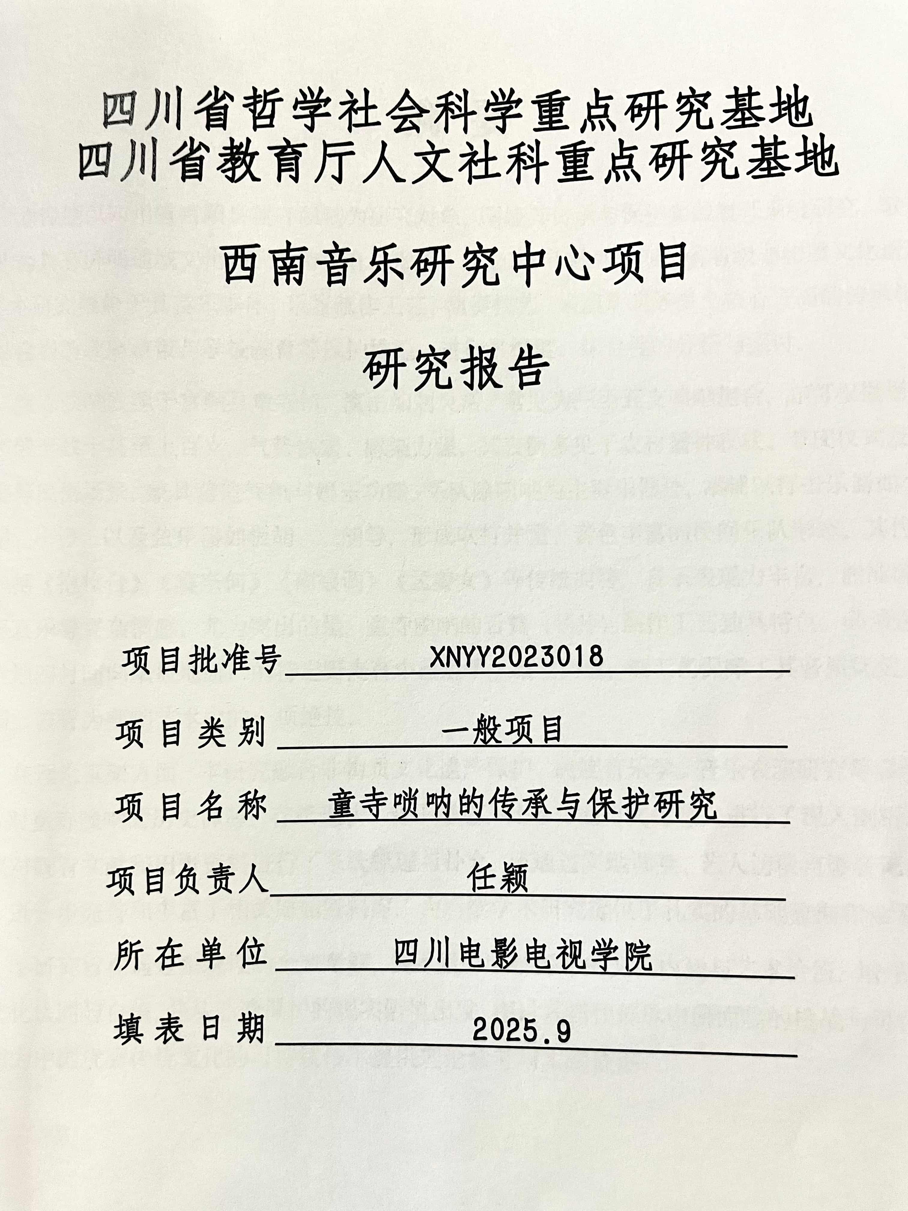 1.《童寺唢呐的传承与保护研究》研究报告;