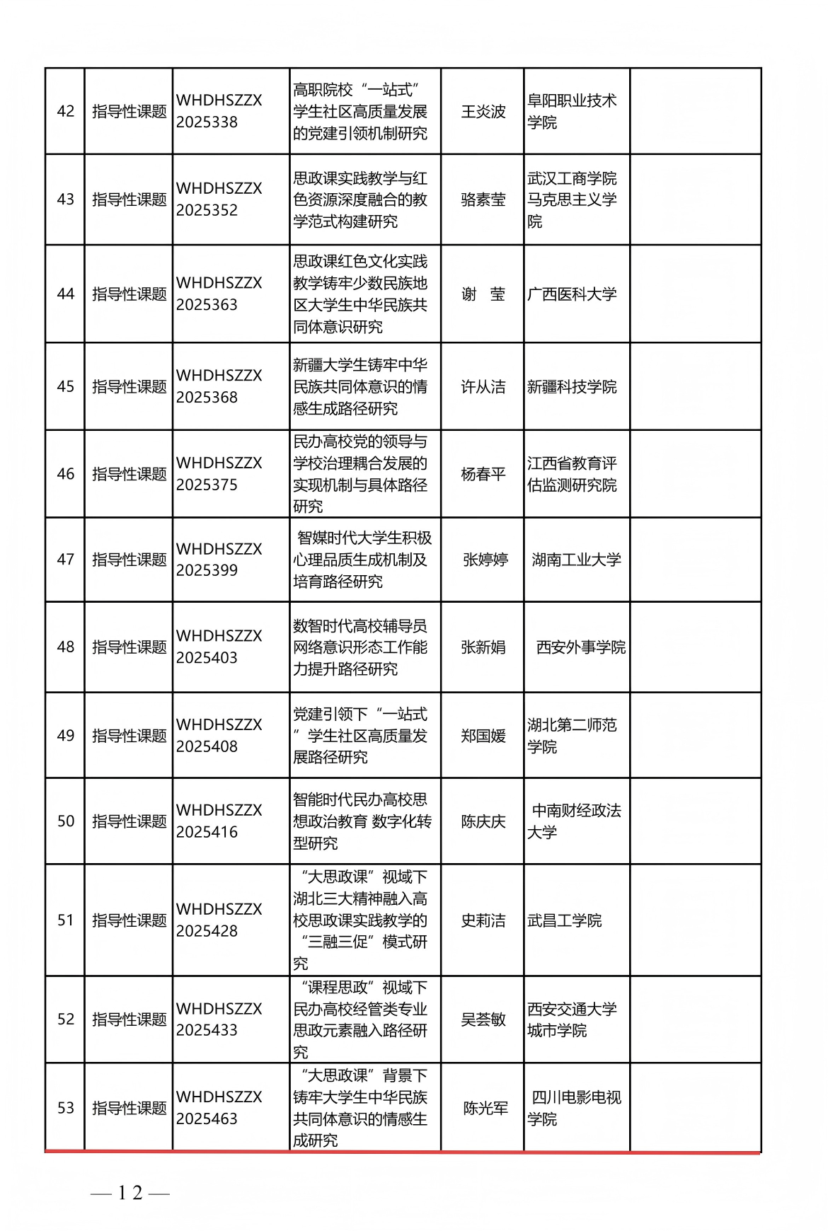 我校陈光军教授主持申报的教育部高校思想政治工作创新发展中心(武汉东湖学院)关于2025年度专项研究课题获得立项