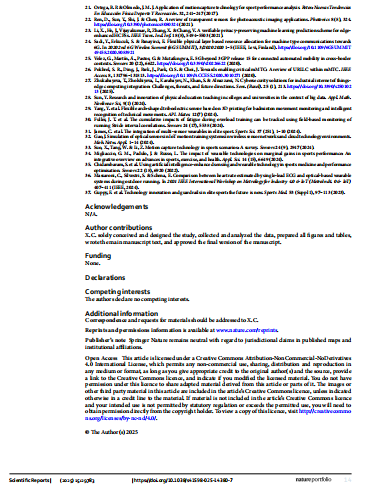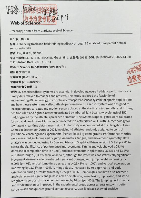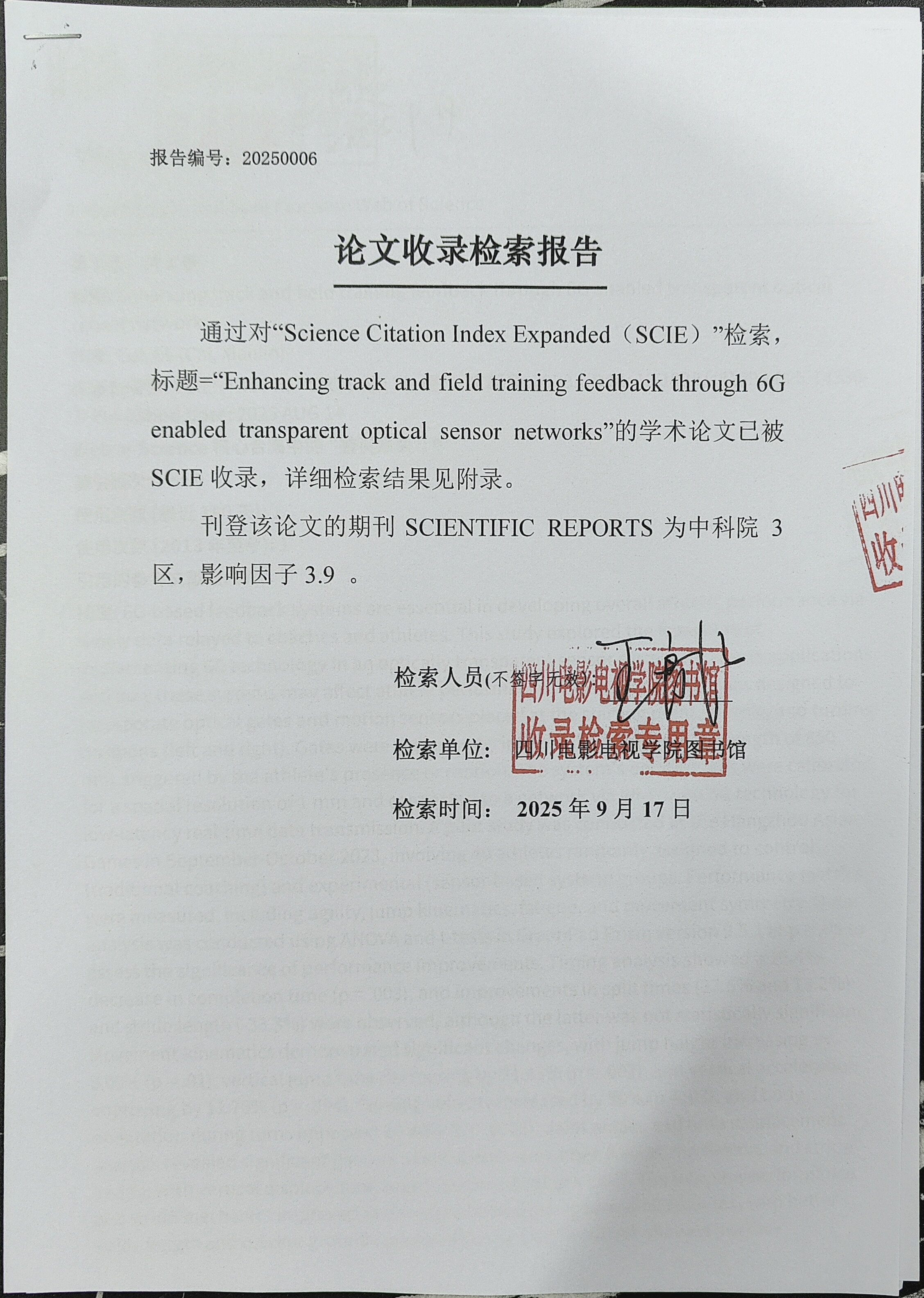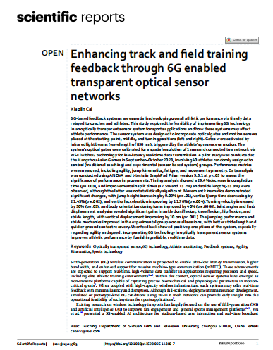 我校基础教学部主任助理蔡小林副教授撰写的论文《Enhancing track and field training feedback through 6G enabled transparent optical sensor networks》在SCIE来源期刊《SCIENTIFIC REPORTS 》正式发表并全文收录。