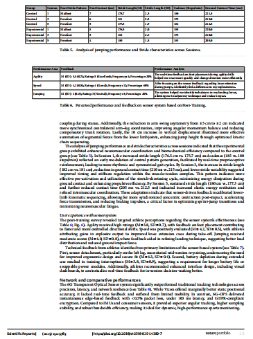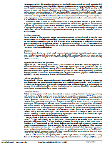 本研究是基于6G技术的反馈系统可在田径训练领域通过向教练员和运动员实时传递数据,对提升运动员综合运动表现起到关键作用。本研究探究了在田径运动领域的光透明传感器系统中部署6G技术的可行性,以及该系统对运动员运动表现的具体影响。