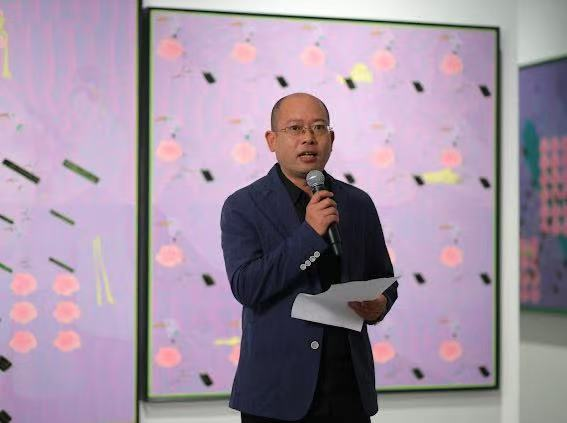特邀国际知名策展人和艺术评论家杜曦云则从文化身份与美学价值的层面切入,全面梳理了王崇学老师二十余年的创作路径,展现其以“点”为核心的独创性“透技法”,以及“以古为新”的实践精神,带领大众在全球化语境中思考“重构” 的当代意义。杜曦云指出:王崇学老师长期接受学院训练,对艺术形式的独立价值有着深刻体悟,他不断试验与推进绘画语言,以回应自身的感受与认知;通过对传统图像的提取与转化,使作品“形式的推陈出新”与“跨越时空的人文共鸣”交织,形成独特的视觉体系。