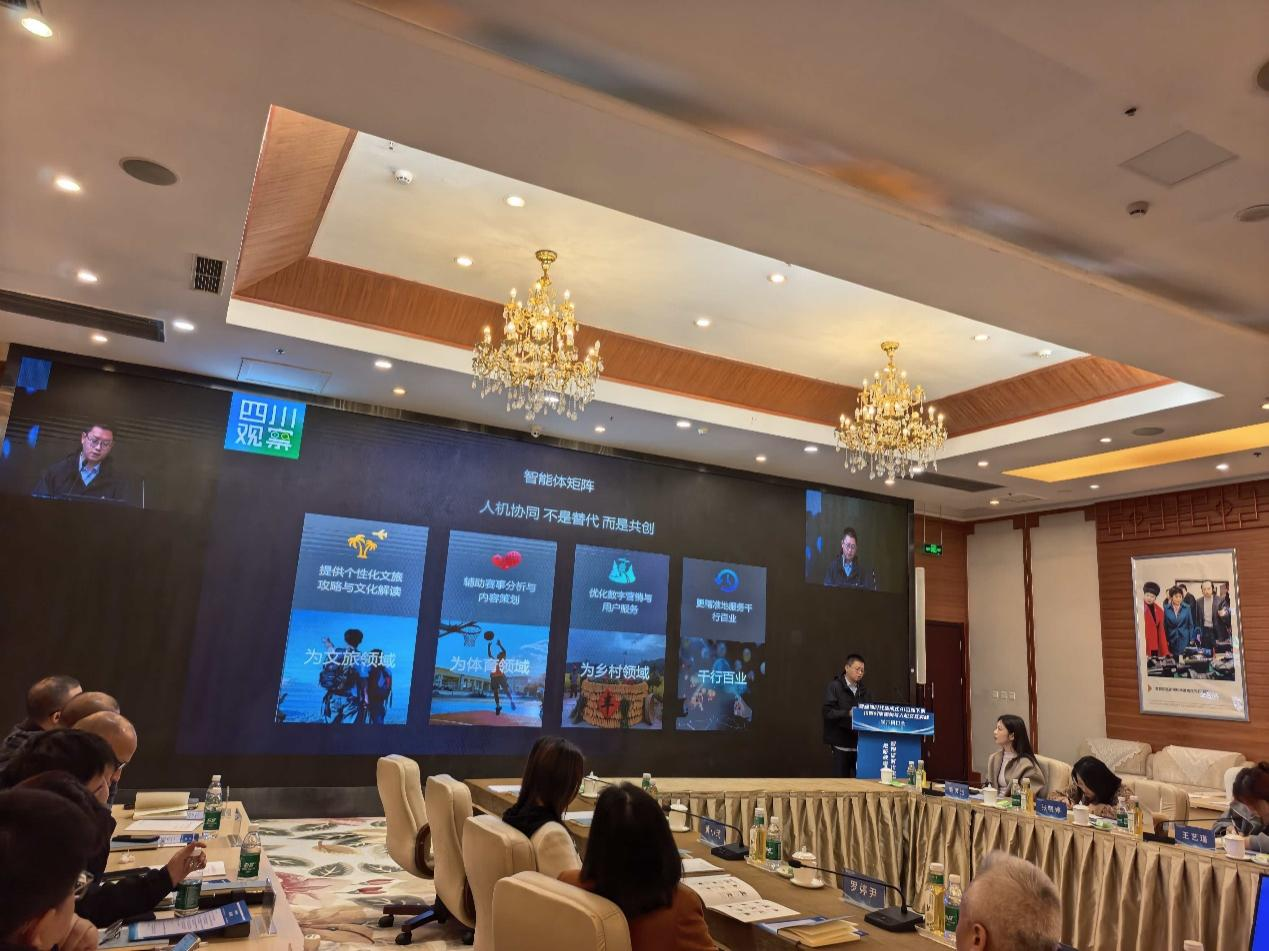 会上,四川观察品牌运营管理部总监刁辰超做了主题为“四川观察的智媒体进化之路:AIGC重构叙事,观观大模型重塑交互”的报告,他认为AIGC重构叙事的关键,在于将抽象的文化符号,转化为可感知的视觉史诗。智能体矩阵的构建是人机协同,不是替代,是共创。我们应该“以智媒大模型重塑交互,让信息获取有温度,人机协作有未来”。