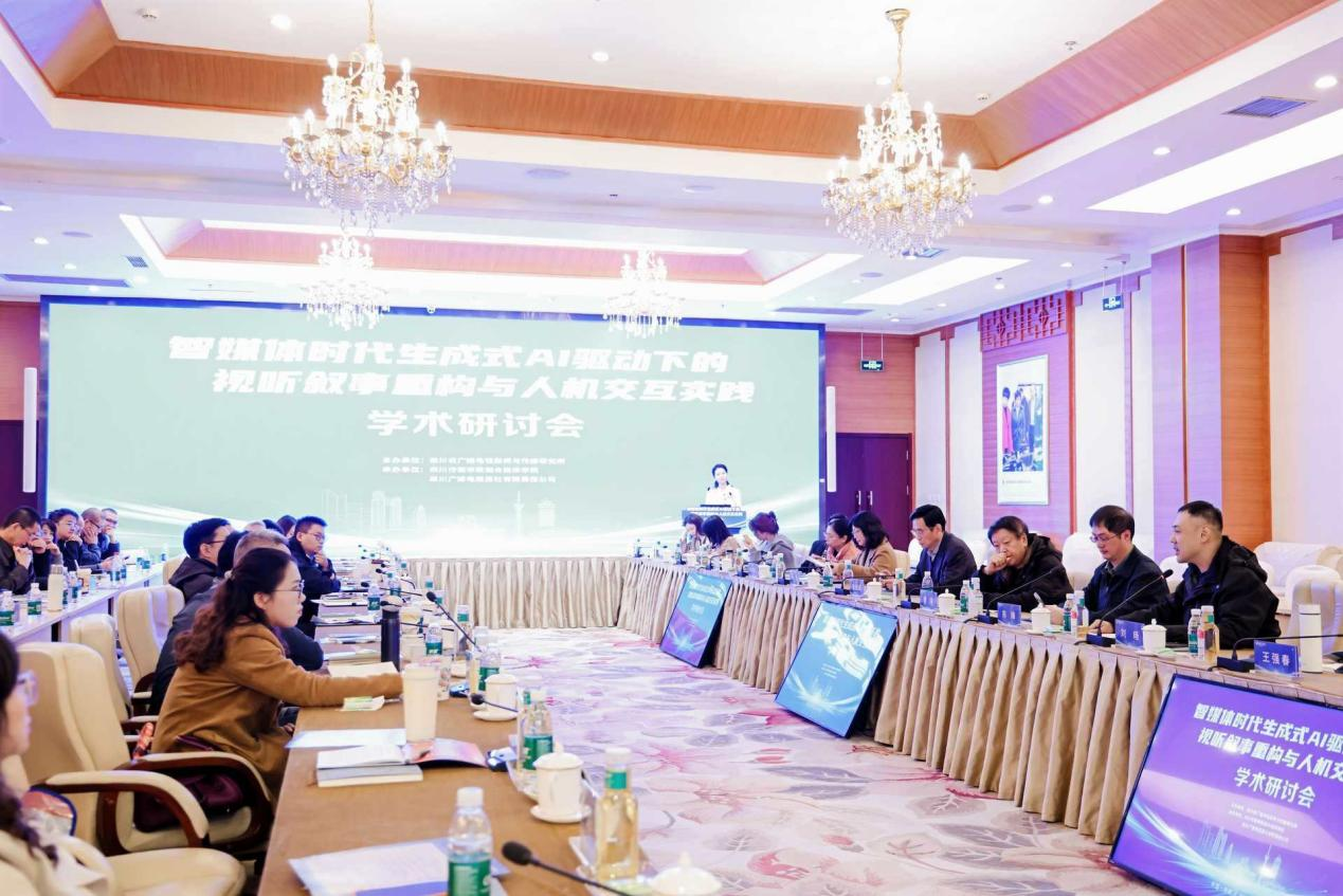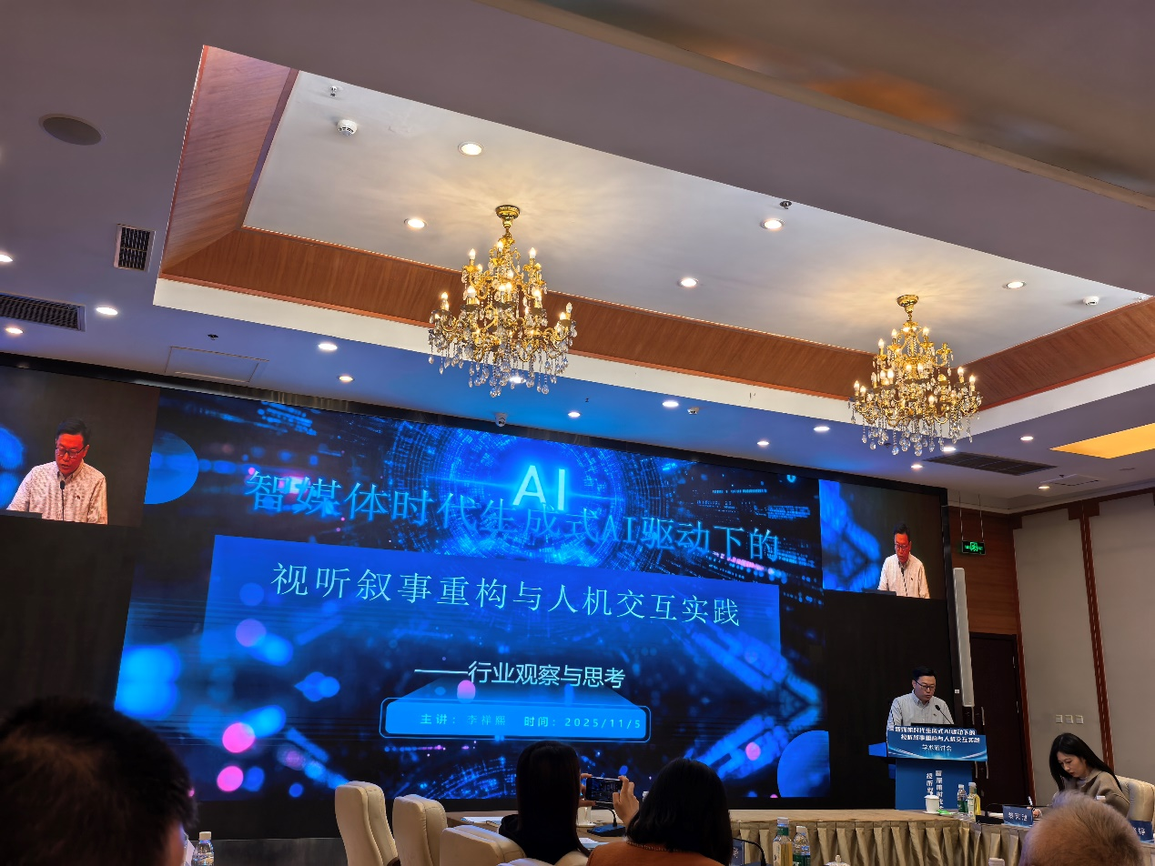 2025年11月5日,四川电影电视学院新媒体学院组织4位教师(郭华、王增国、郑殿新、刘博)参加了“智媒体时代生成式AI驱动下的视听叙事重构与人机交互实践”学术研讨会。本次研讨会由四川省广播电视新闻与传播研究所主办,四川传媒学院融合媒体学院承办。