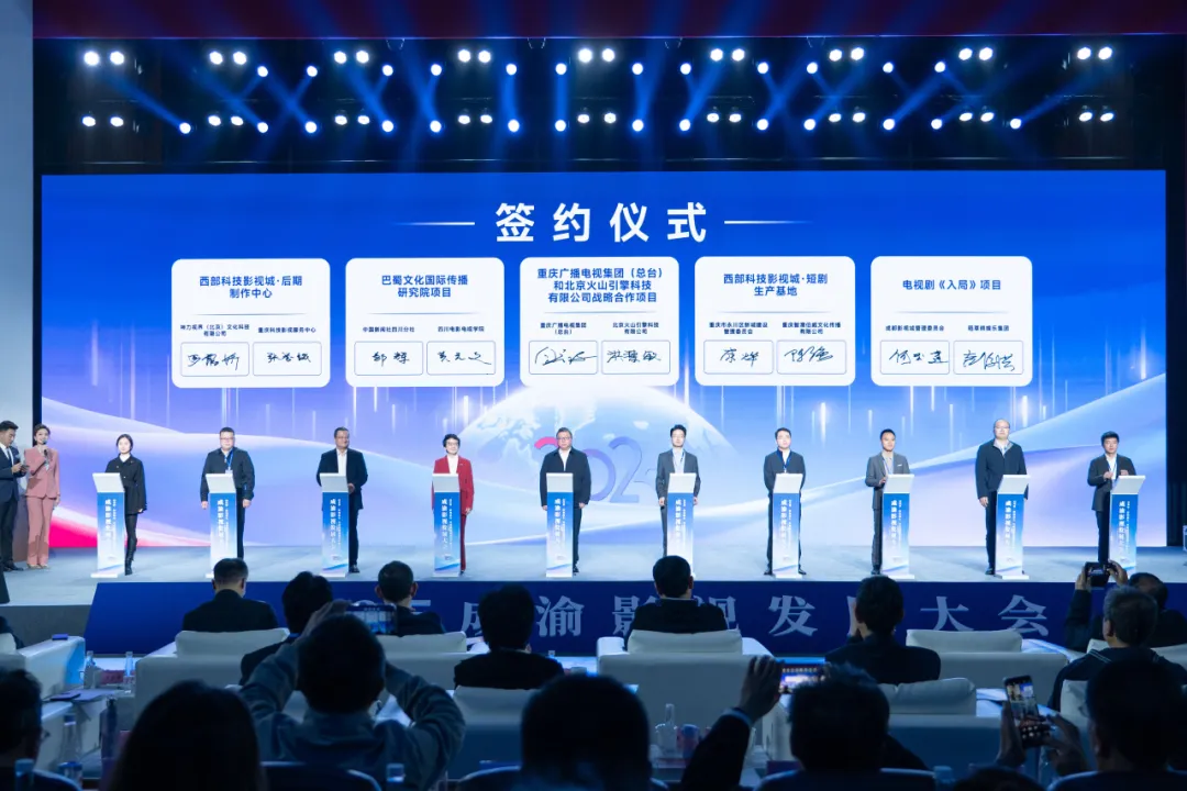 在成渝两地重点影视项目集中签约仪式上,11个优质影视项目成功签约,涵盖产业合作、国际传播、技术创新、文旅融合等多个领域,尽显双城协同的“硬核成果”。