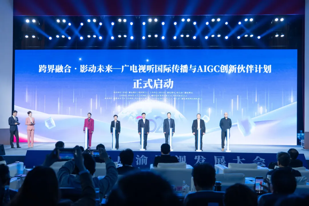 四川省广播电视局、重庆市广播电视局、四川省文化和旅游厅负责同志与发起单位四川电影电视学院、中国新闻社四川分社、央广网四川分公司,共同启动《跨界融合・影动未来——广电视听国际传播与AIGC创新伙伴计划》