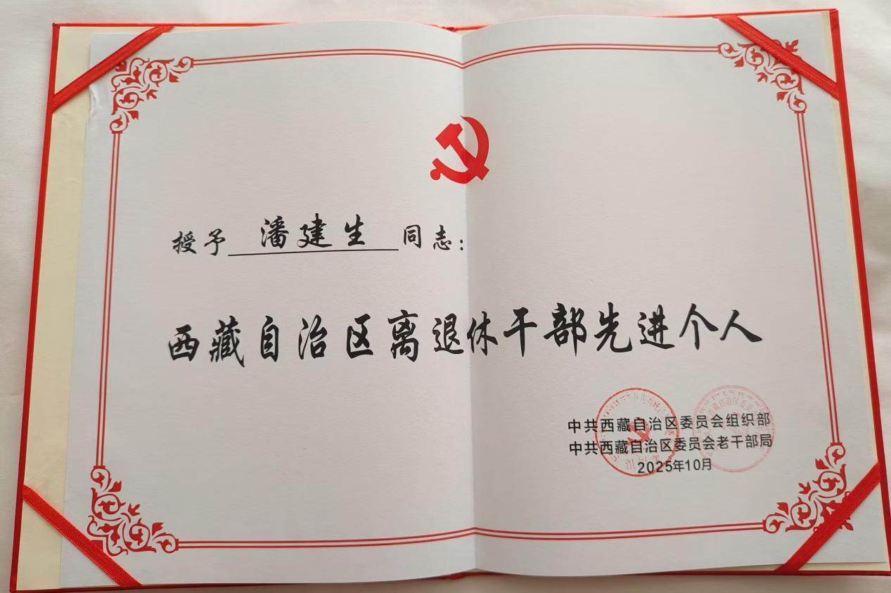 (潘建生教授获得西藏自治区离退休干部先进先进个人荣誉证书)