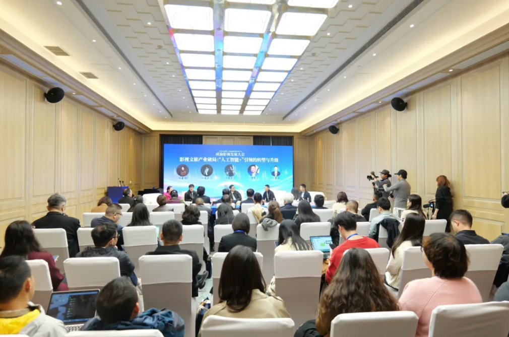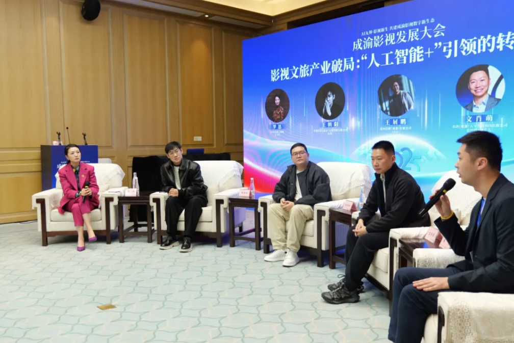 这场名为“影视文旅产业破局:‘人工智能+’引领的转型与升级”的沙龙,聚集了来自影视、传媒、科技等领域的四位嘉宾:原华谊发行总监、现中视浩洋(北京)文化传媒有限公司总裁王朝阳,道川传媒(成都)有限公司、创始人,四川省影视发展联合会理事王展鹏,井鸽(成都)人工智能科技有限公司CEO文肖萌,重庆达瓦合志影像科技有限公司首席运营官陈亮。四位来自产业一线的嘉宾分享了他们的思考与探索。