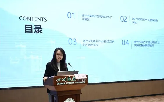交流发言阶段分别由四川旅游学院四川省铸牢中华民族共同体意识研究基地副主任杨荣涛研究员和四川旅游学院党委宣传部副部长杨洋主持。14名专家学者依次从凉山民族团结抗战文化、云南省普洱市民族团结誓词碑、西藏的红色精神、西南民族地区的祠庙碑刻、固始根亲文化、西域的儒家文化、西藏的关公信仰、桃坪羌寨的遗产空间、蜀南的传统榫卯技艺、成都的民族互嵌社区、红色文化与思政教育、《我的阿勒泰》的共同体叙事等诸多视角,分别对铸牢中华民族共同体意识的文旅资源、实践路径和理论模式进行了深入交流。会议深化了文旅融合与民族“三交”的理论认知。四川旅游学院将以此次会议为契机,持续推进产学研用协同创新,为铸牢中华民族共同体意识贡献力量。