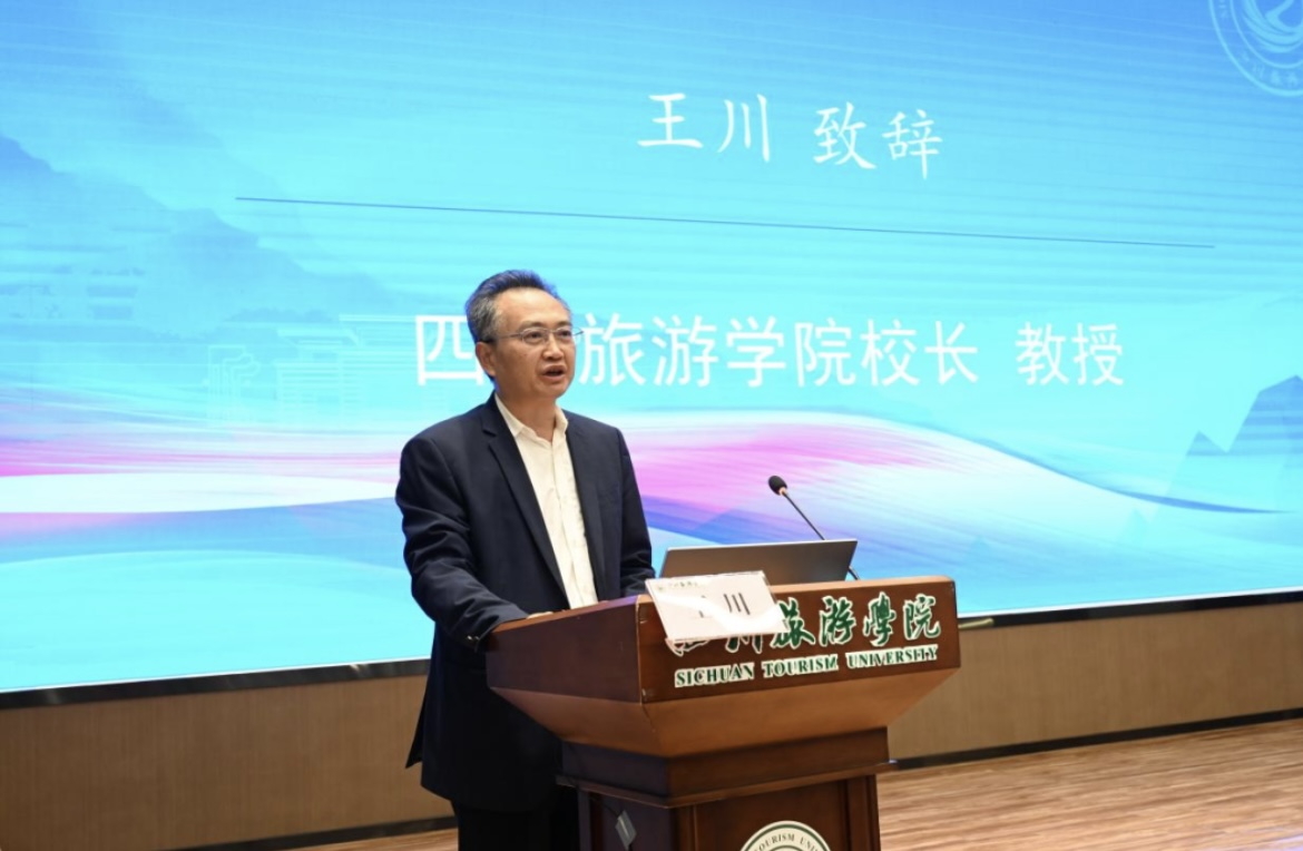 四川旅游学院校长王川出席开幕式并致辞。王川校长指出民族交往交流交融是实现中华民族伟大复兴的必然趋势,推动文旅深度融合,可为各族人民实现更深层次、更广范围、更高水平的“三交”提供澎湃动力和广阔平台。作为国内首所以“旅游”命名的本科高校,四川旅游学院始终以“强旅报国”为己任。近年来四川旅游学院马克思主义学院依托四川省铸牢中华民族共同体意识研究基地,在旅游促“三交”、红色资源开发与共同体意识建设等方面做出了卓有成效的工作。希望与会专家学者畅所欲言,分享前沿研究成果,为文旅融合促“三交”建言献策。