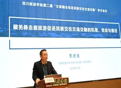 我校论文《影视文旅融合促进各民族交往交流交融的实践与探索一一基于四川影视文创城与安仁古镇的案例研究》,作者:蒲爱民、陈雯雯、李正丽、潘建生,论文《抗战新疆:慈善义演、共通意义空间与中华民族共同体建构》,作者:陈光军,入选第二届“文旅融合促进各民族交往交流交融”学术研讨会,2025年11月15日,第二届“文旅融合促进各民族交往交流交融”学术研讨会在蓉举行。会议由四川旅游学院主办,四川旅游学院马克思主义学院、四川旅游学院四川省铸牢中华民族共同体意识研究基地、四川红色文旅研究中心、成都市特大城市精细化治理研究中心承办。来自四川省民族宗教事务委员会、中央民族大学、西北农林科技大学、新疆师范大学、伊犁师范大学、云南民族大学、西藏大学、临沂大学、四川大学、西南民族大学、四川师范大学、四川农业大学、成都大学、西南石油大学、普洱学院、内江师范学院、阿坝师范学院、四川旅游学院等34家单位的100余名专家学者参加会议。四川旅游学院马克思主义学院院长吴小莉主持开幕式。受研讨会邀请我校陈光军教授、陈雯雯老师参加本次会议。